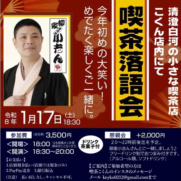 第二回 清澄白河駅 喫茶こくん落語会 1月17日(土)
