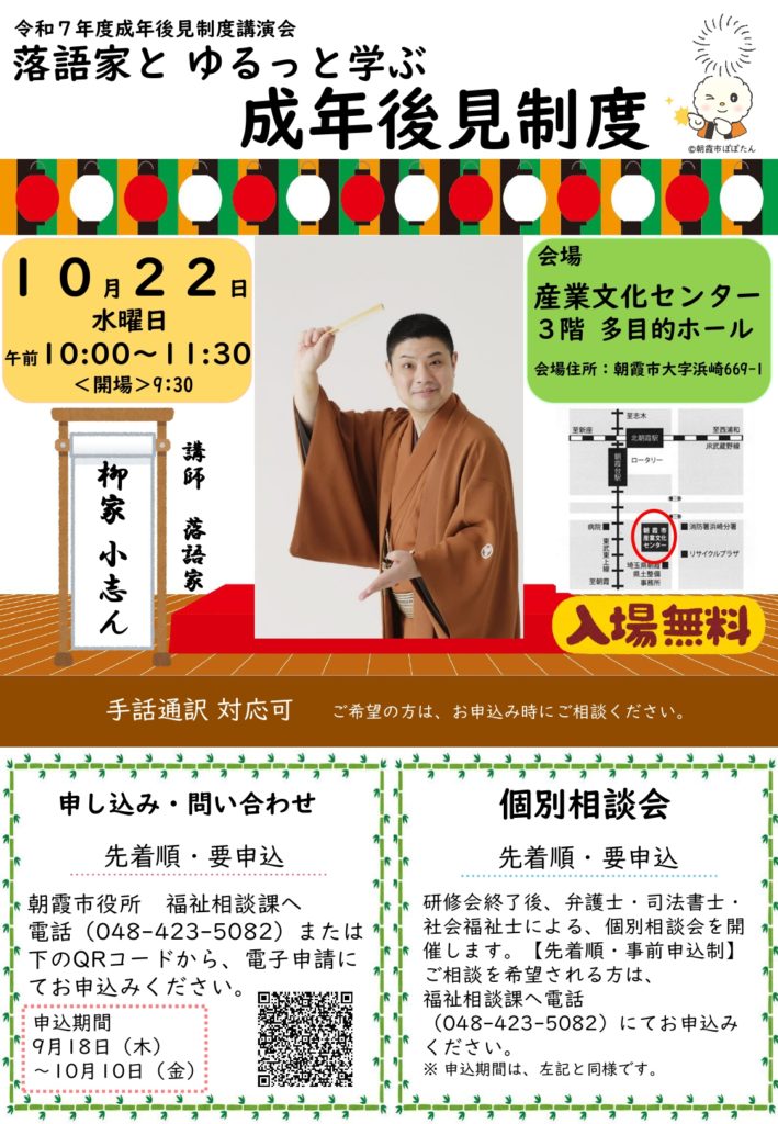 成年後見制度講演会「落語家とゆるっと学ぶ 成年後見制度」10月22日(水)