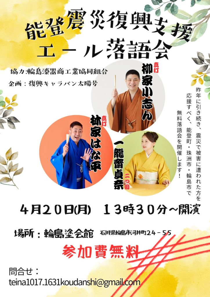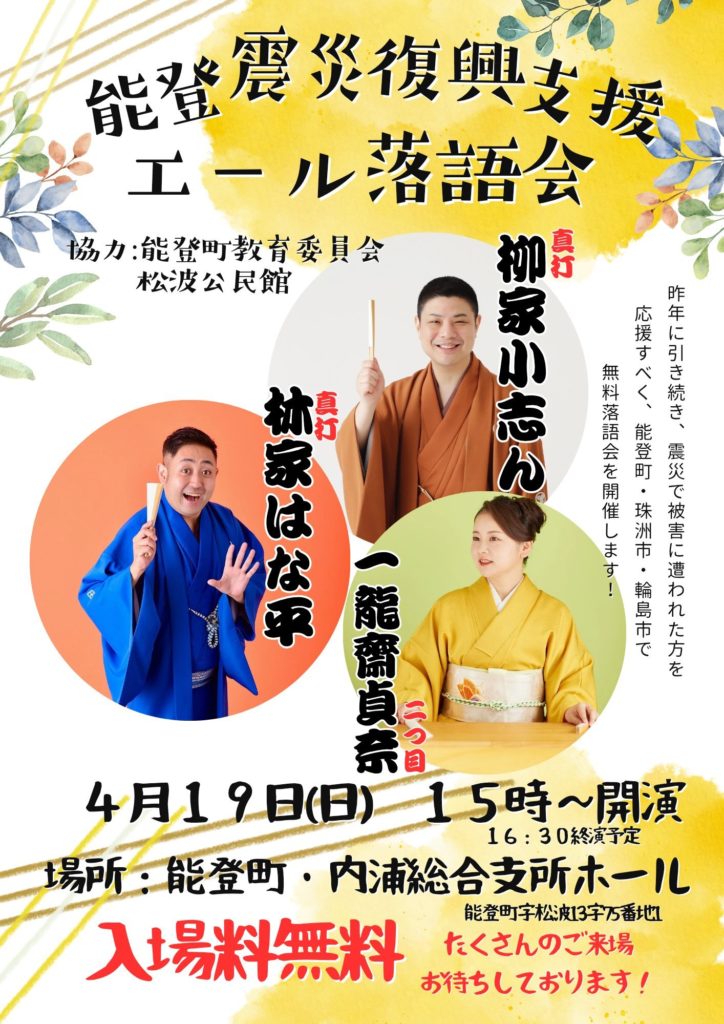 4月19日(日)~20日(月)【能登震災復興支援 エール落語会】